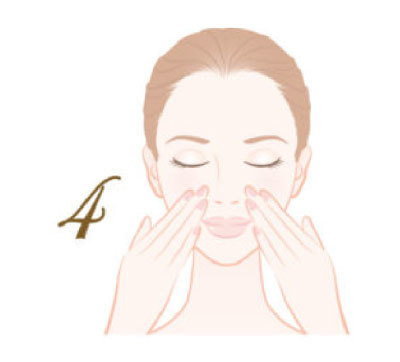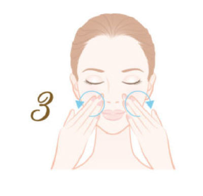 3.毛穴に逆らうように、肌を下から上へ軽く持ち上げるように意識して、マッサージしながら塗り込みます。