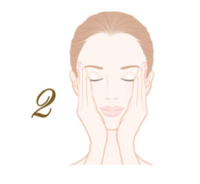 4.最後は手のひらで顔を包み込み、ハンドプレス。肌にHARIを押し込み、安定させます。